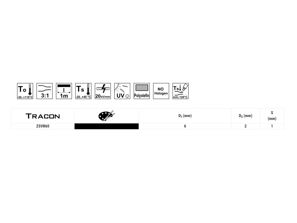 bužírka ZSRV60 6/2mm smrštitelná s lepidlem černá