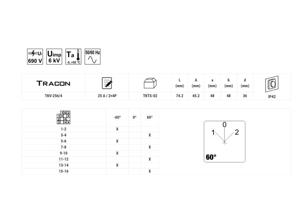 přepínač vačkový TKV-256/4 1-0-2 25A 7,5kW IP42