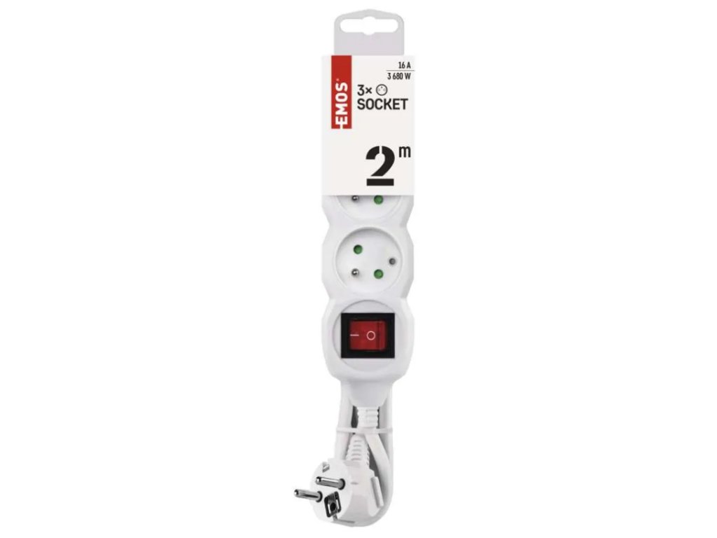 prodlužovací kabel 3 zásuvky, 2m s vypínačem P1312
