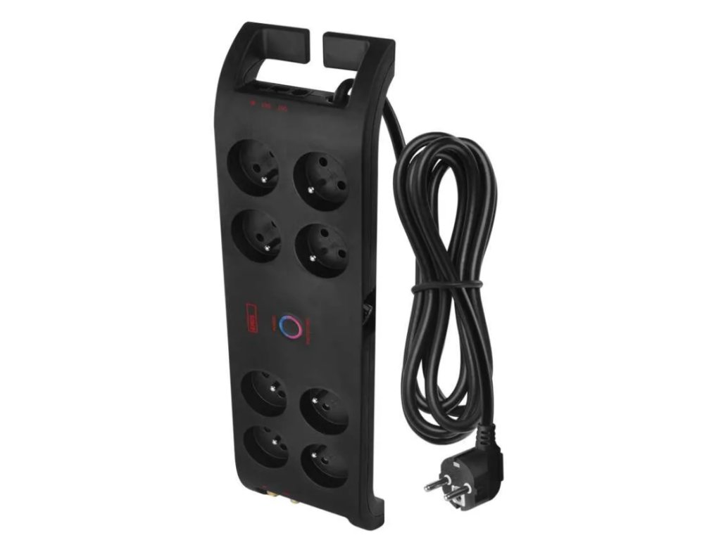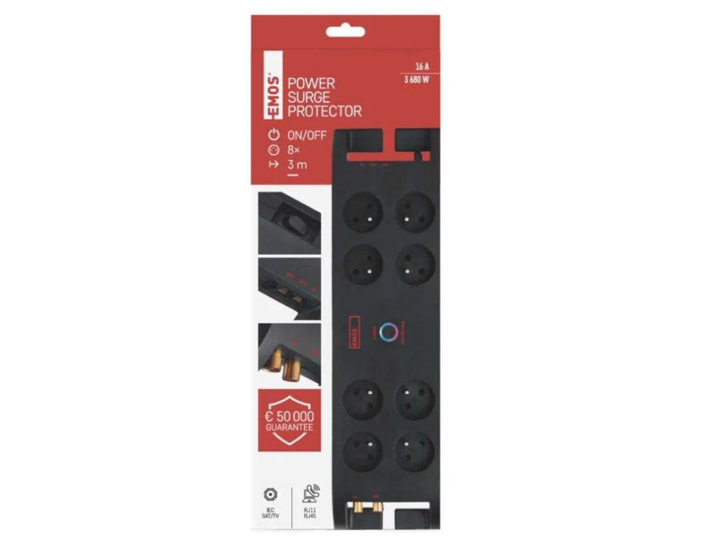 prodlužovací kabel 8 zásuvek 3m s přepěťovou ochranou černý 1800J