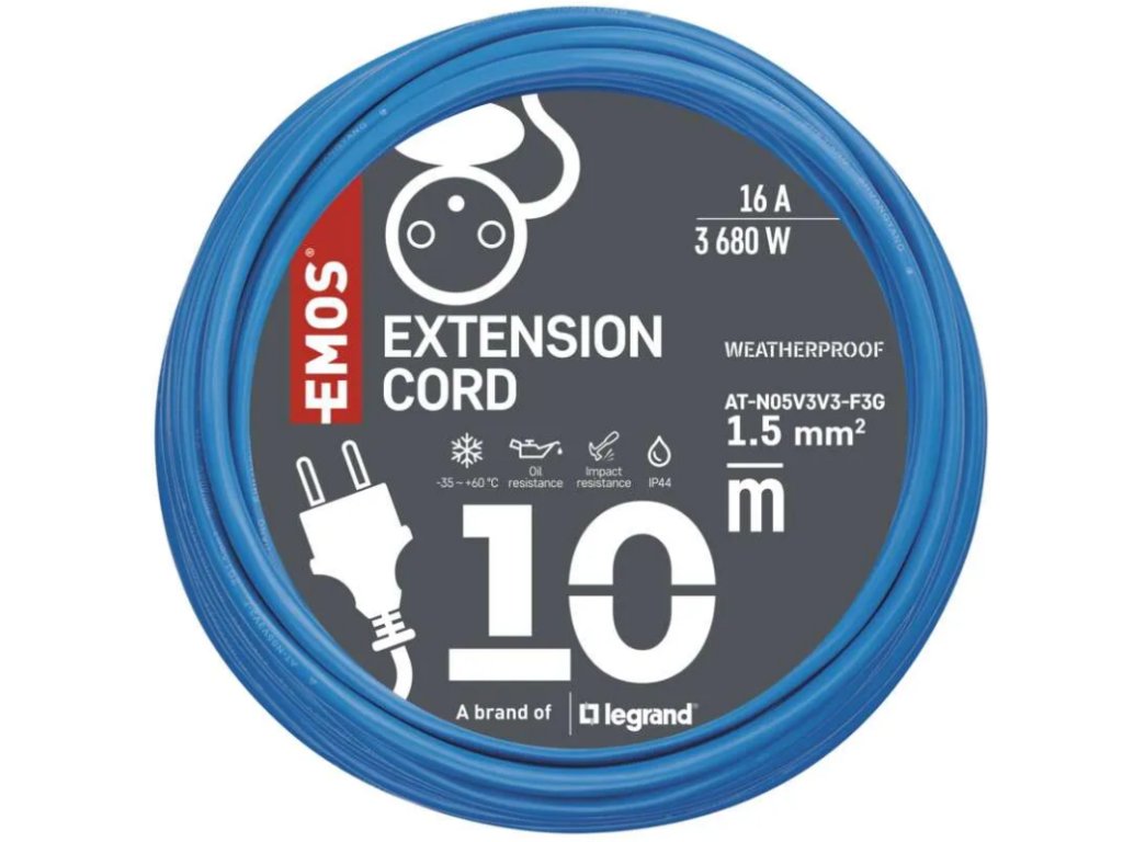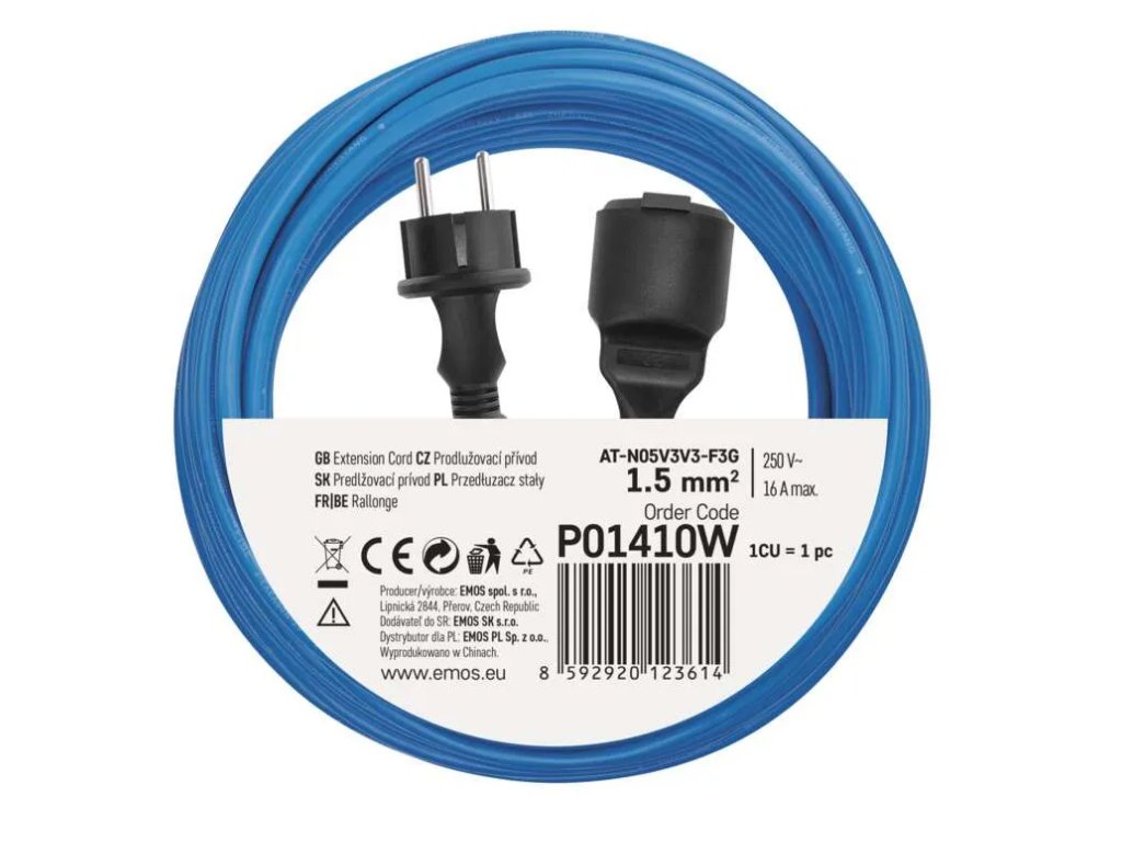 prodlužovací kabel spojka, 10m, 3x1,5mm2, IP44, modrý
