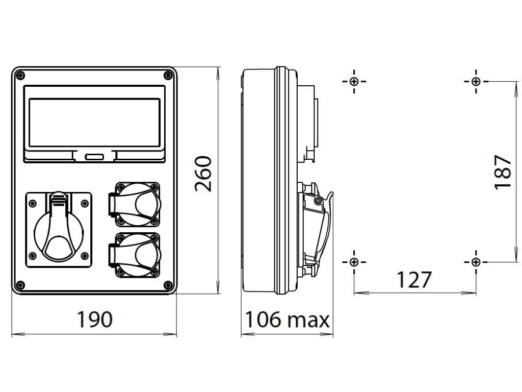 skříň zásuvková EDS8 RCD 2-2/1-5 16 2x230V/16A 1x400V/16A/5P IP44