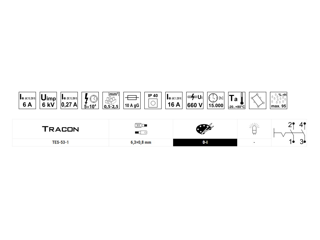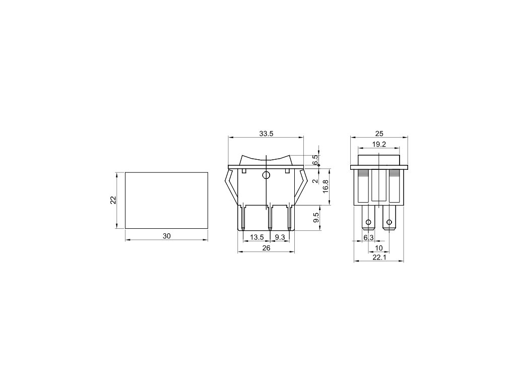 vypínač kolébkový TES-53-1, ON-OFF 2pol. 250V/16(6)A