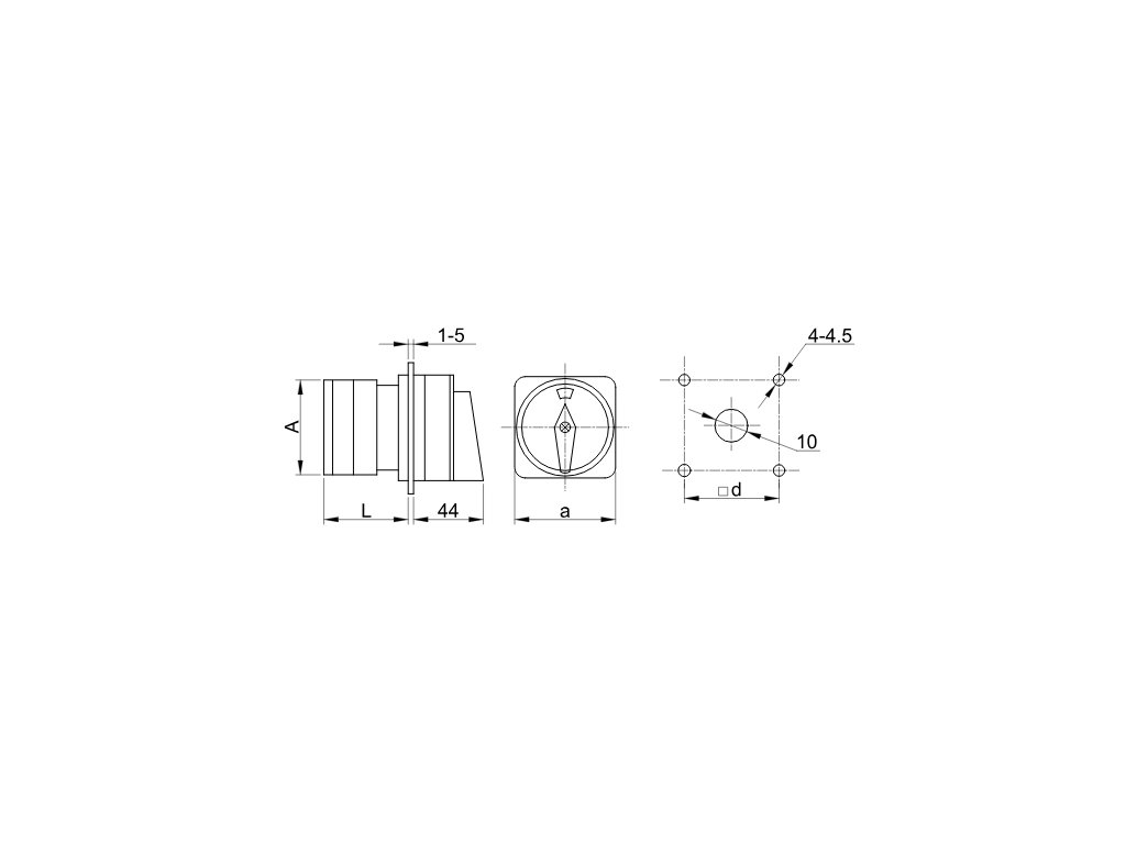 Rozměry: čelní panel 64 x 64 mm (hloubka 54,8 mm)