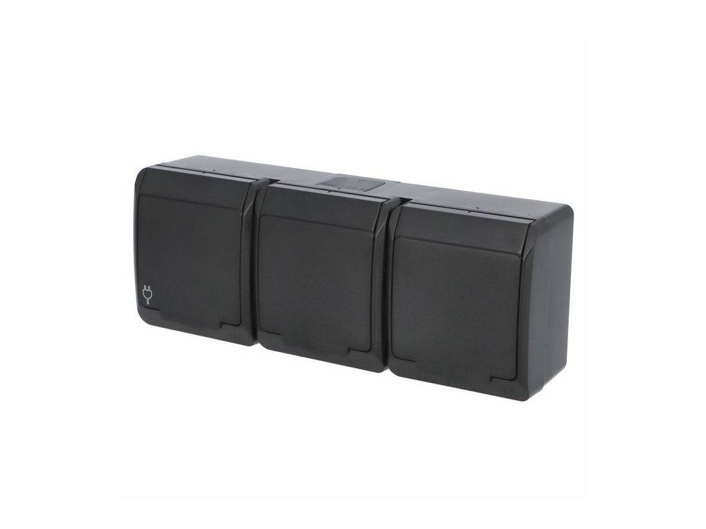 zásuvka 3-násobná vodorovná IP44 černá GALATEA